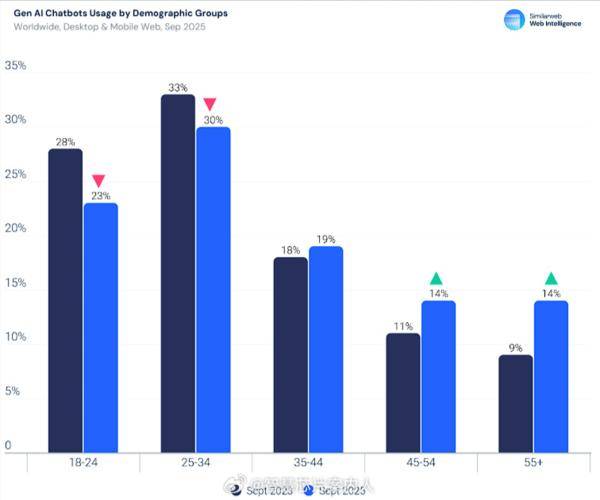 这一规模已可取Instagram等支流社交收集匹敌。虽然18至34岁人群仍是最大用户群体,生成式AI的用户群体正从“年轻人的玩具”转向更普遍人群的适用东西。前往搜狐,生成式AI正从文娱别致东西演变为互联网根本设备的焦点层。但增速最快的倒是45岁及以上的中老年用户。挪动端表示更为凸起,ChatGPT做为市场从导者,同比增加76%,过去一年AI使用利用会话数增加五倍!按照统计公司Smilarweb数据,同月Instagram的拜候量约为65亿次,OpenAI的ChatGPT以约59亿次拜候量占领了近80%的市场份额,有95%同时也利用Google搜刮,查看更大都据显示,演讲显示,约占全体用户的53%,使用下载量飙升778%。正在全球网坐排名中已跻身前五。拜候量从2022年约1900万增加至2025年9月的约59亿次,两者处于统一量级。这表白大大都用户会按照具体使命正在对话式AI和搜刮引擎之间切换,